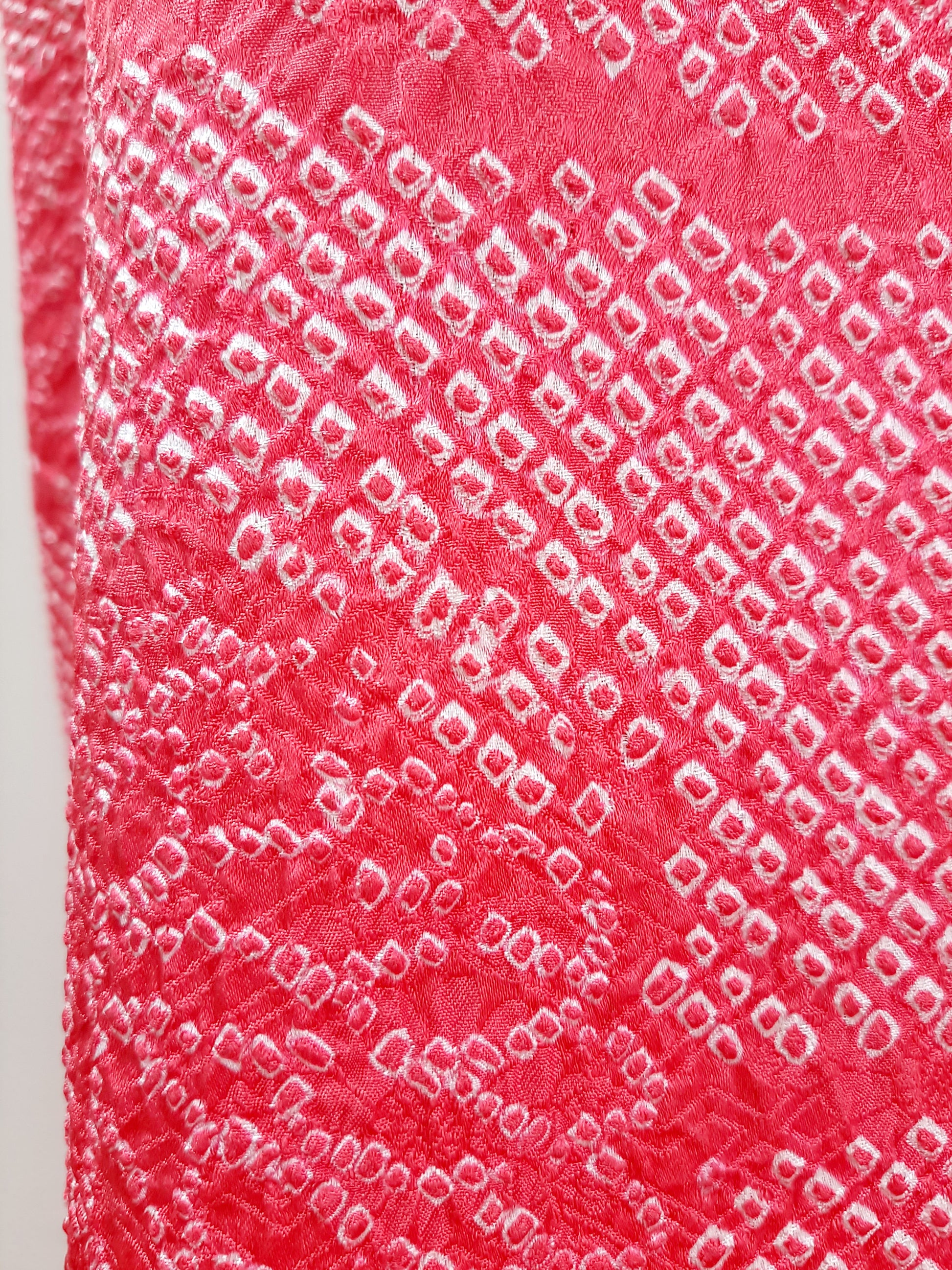 Artisans in the past tied every single bumps(circles) by hands. Not to mention it's extremely time consuming work and it needs high level of skills. We can't even imagine how long it took to finish up a whole fabric for one kimono.